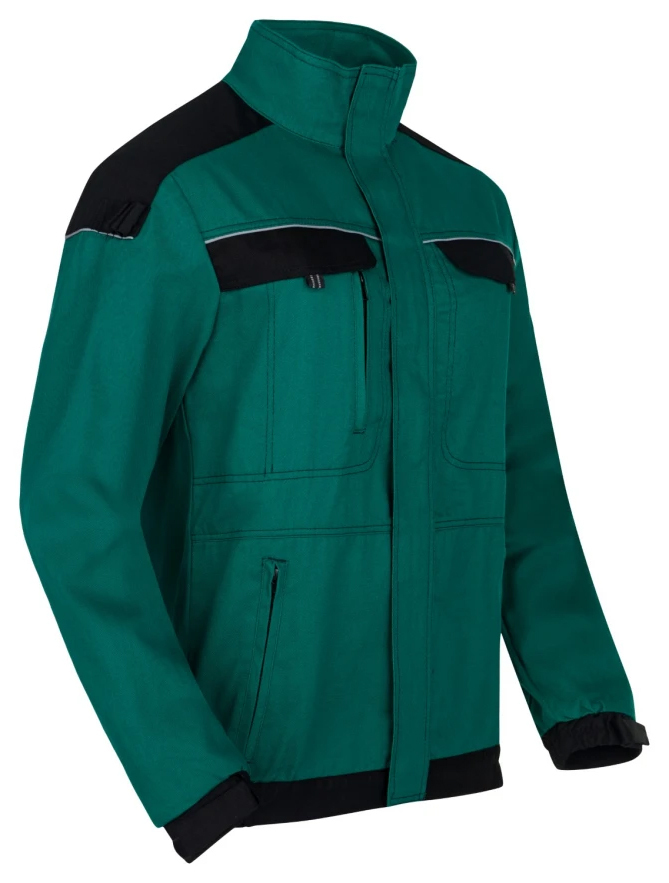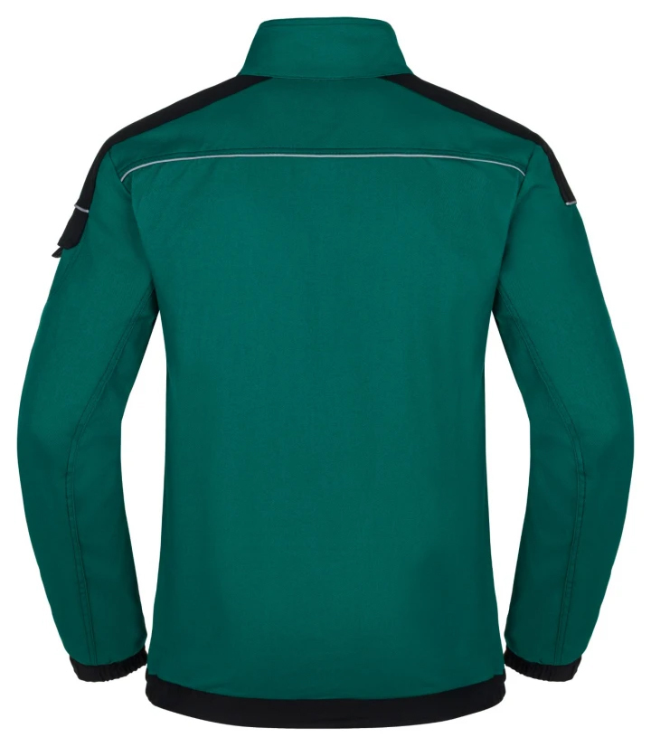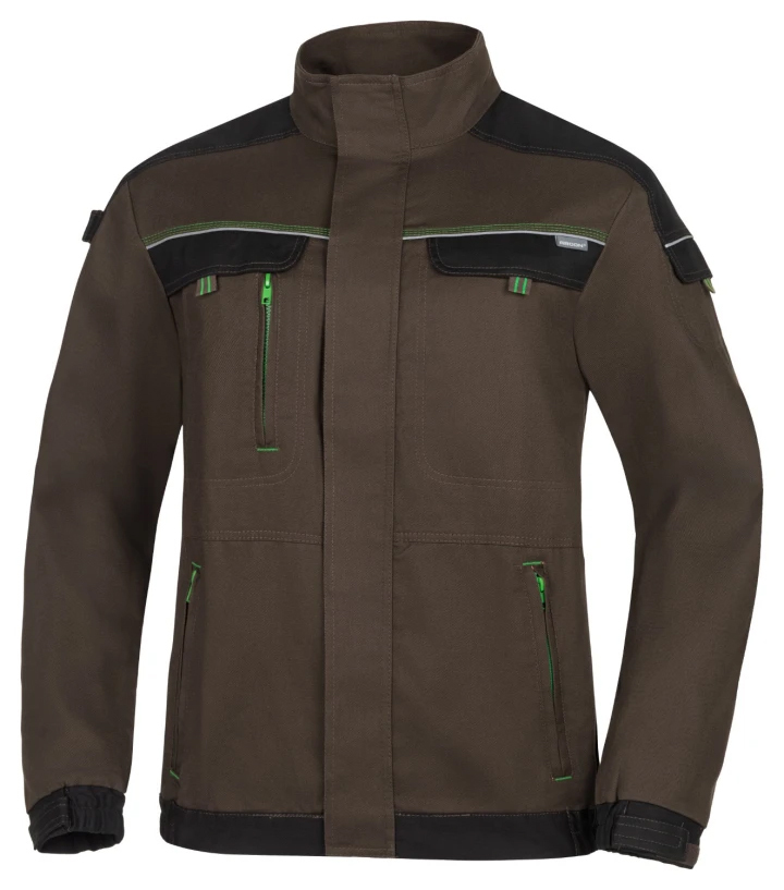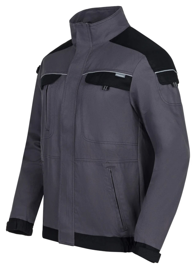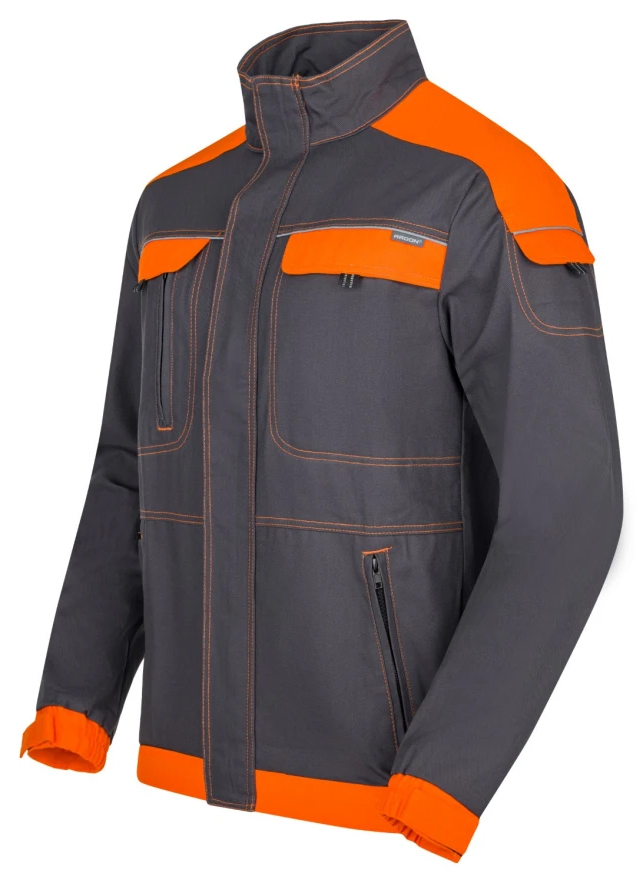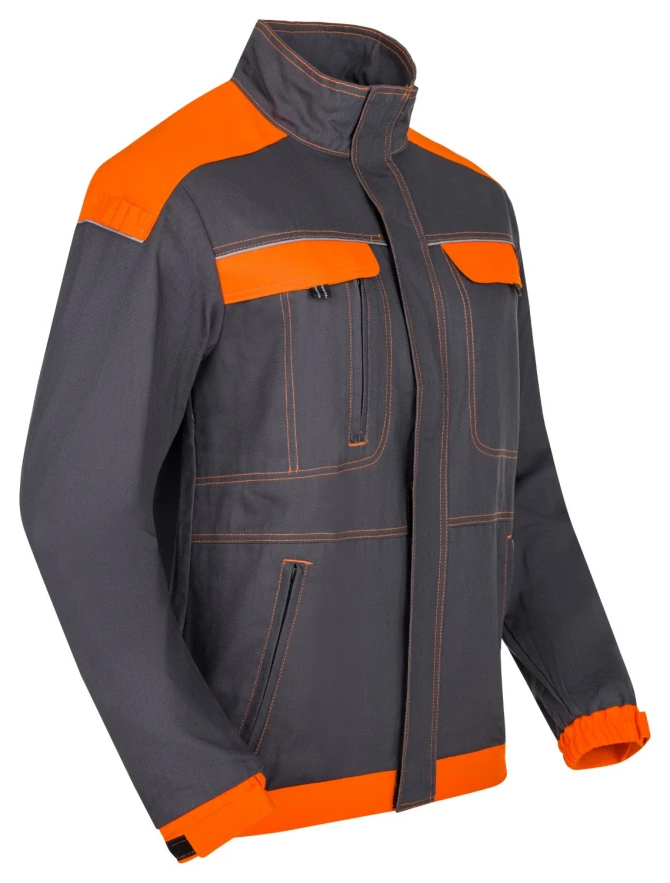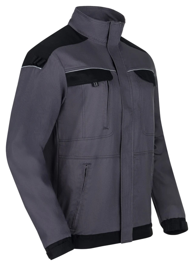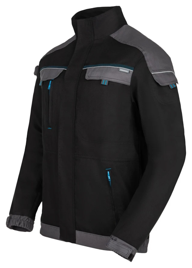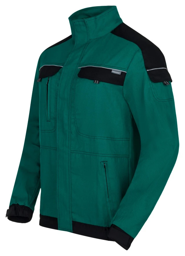 Klasická montérková pracovná blúza, zapínanie na zips, nastaviteľná šírka rukávov, kontrastné sedlo, náprsné vrecká na suchý zips, náprsné vrecko na telefón na zips, 2 spodné vrecká na zips, vrecko na ľavom rukáve s reflexnými doplnkami, materiál 100% bavlna, keprová väzba.