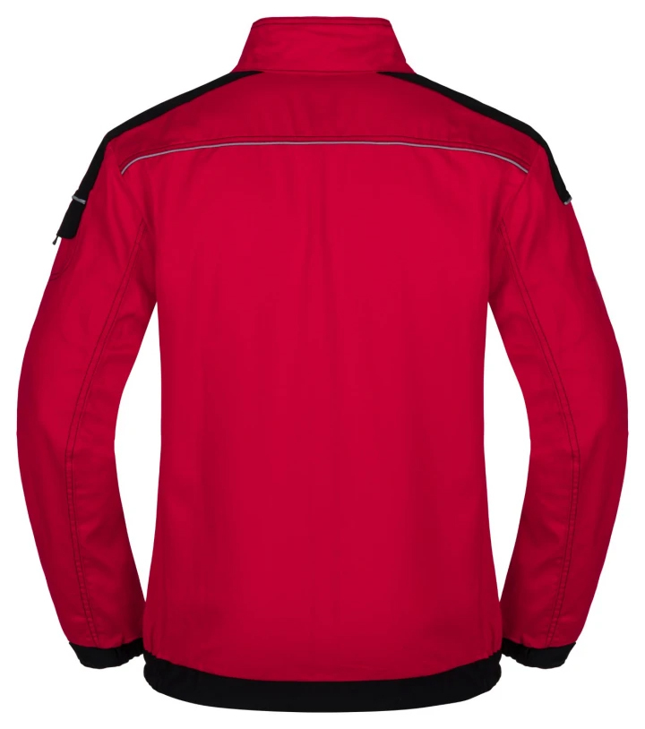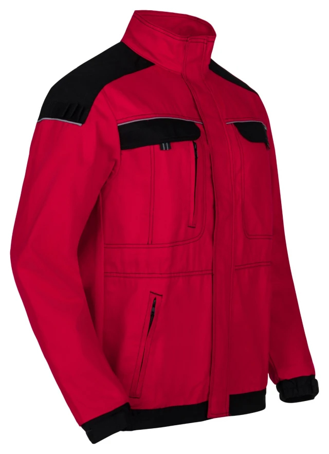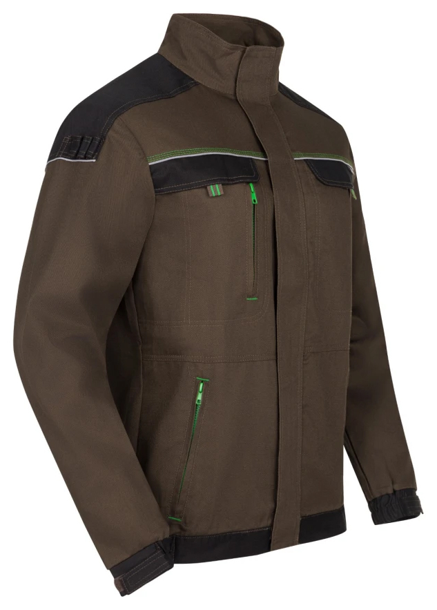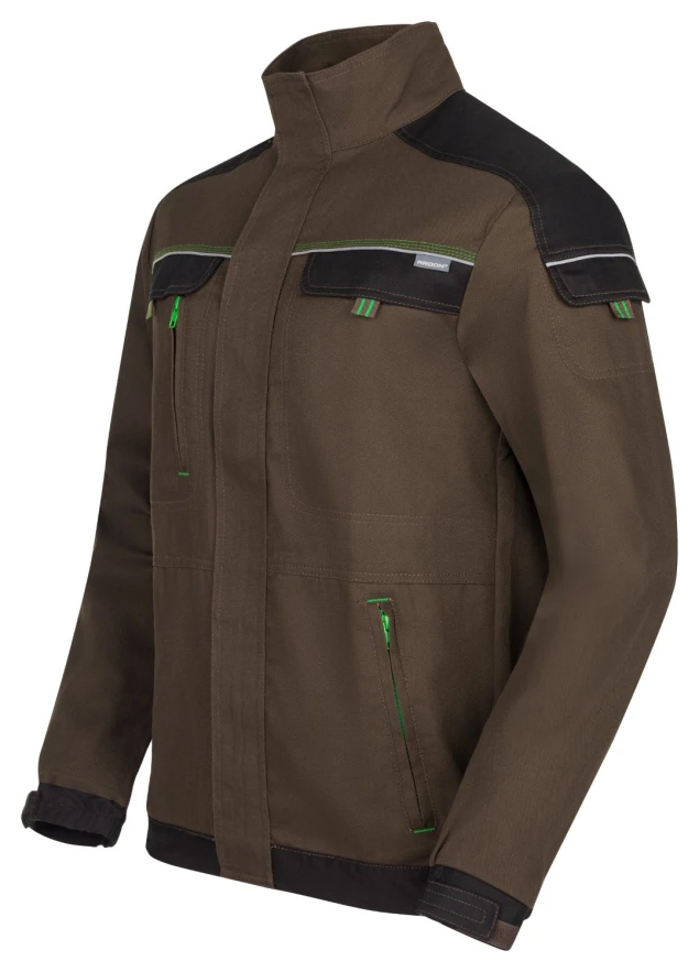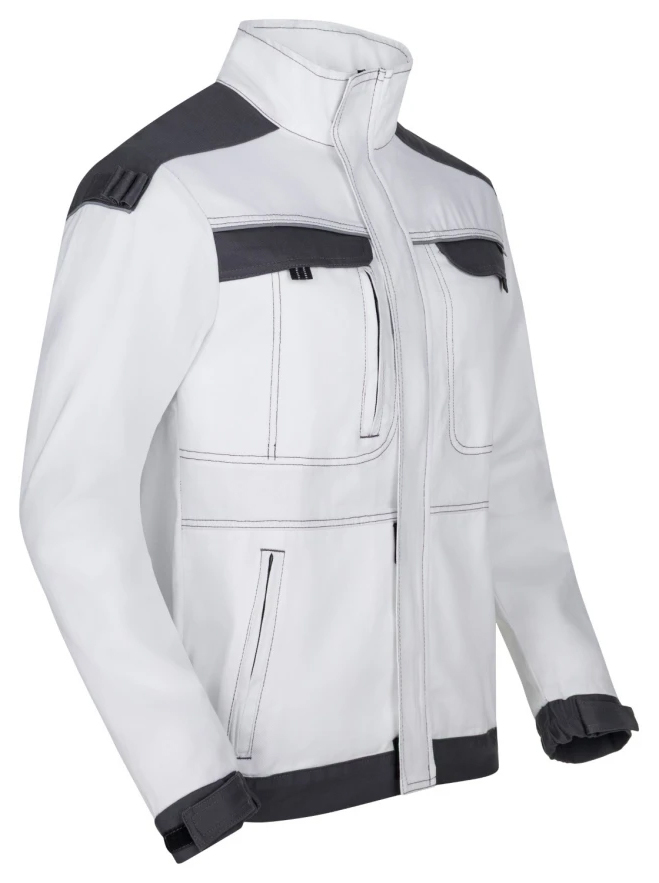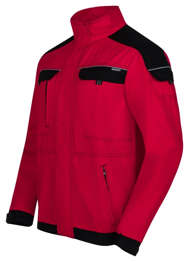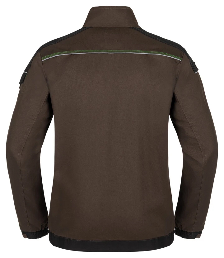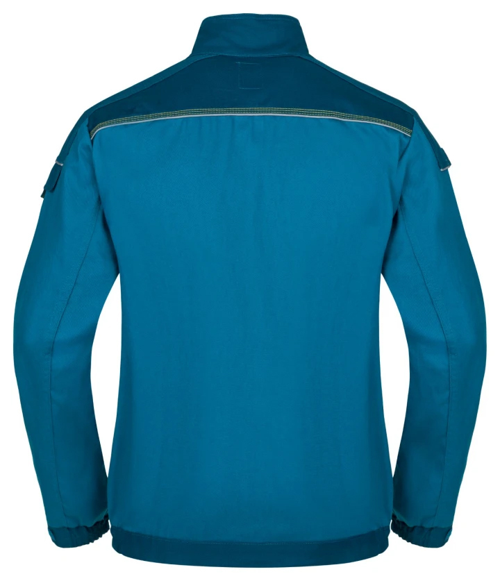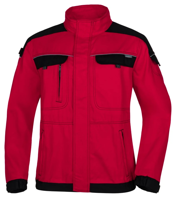 Klasická montérková pracovná blúza, zapínanie na zips, nastaviteľná šírka rukávov, kontrastné sedlo, náprsné vrecká na suchý zips, náprsné vrecko na telefón na zips, 2 spodné vrecká na zips, vrecko na ľavom rukáve s reflexnými doplnkami, materiál 100% bavlna, keprová väzba.
