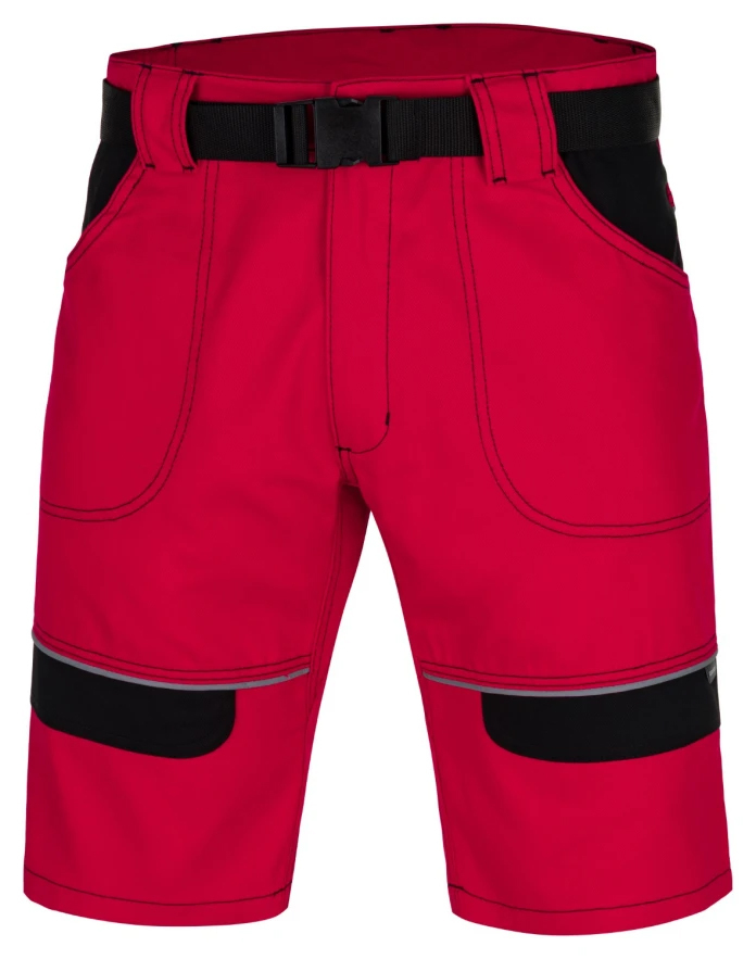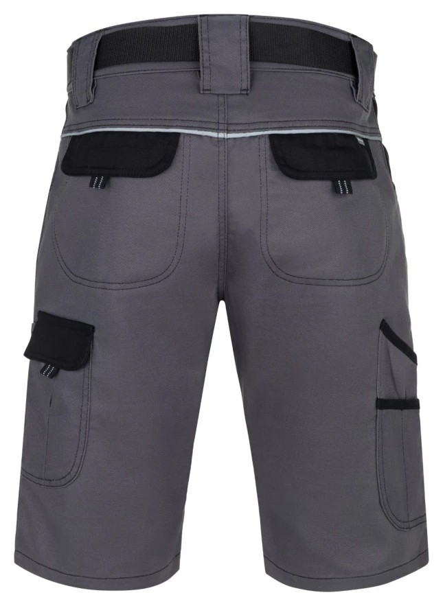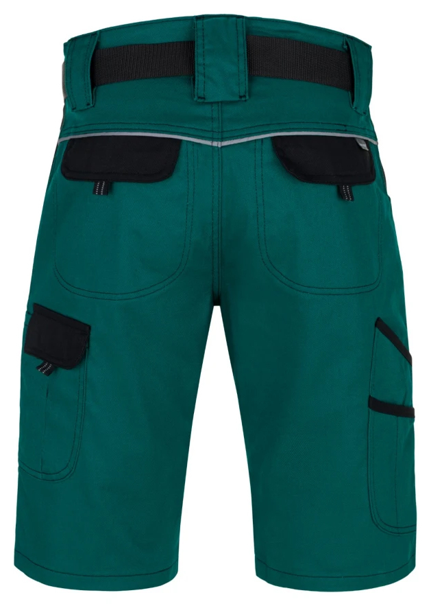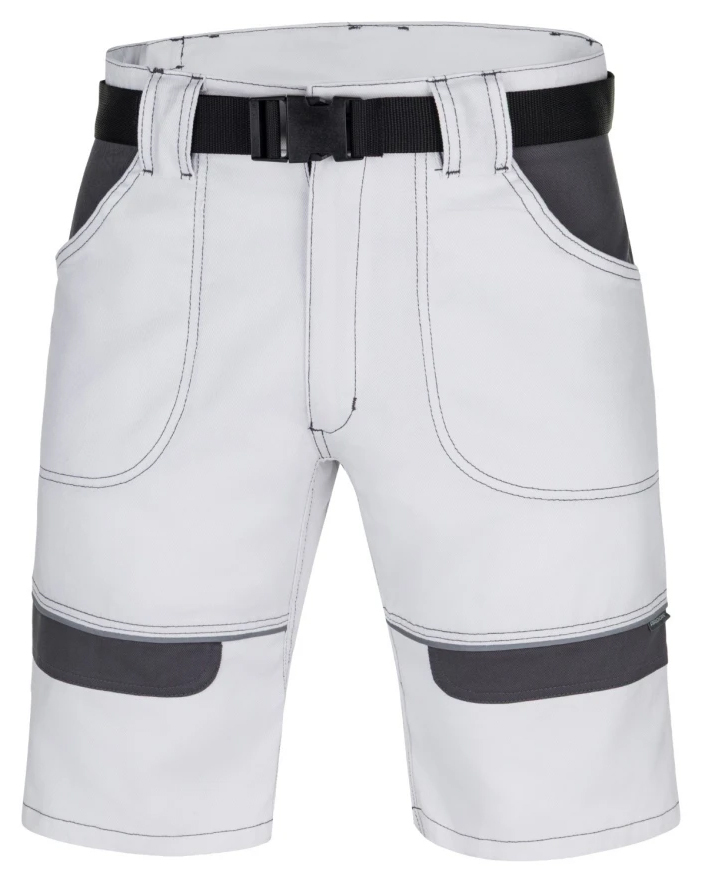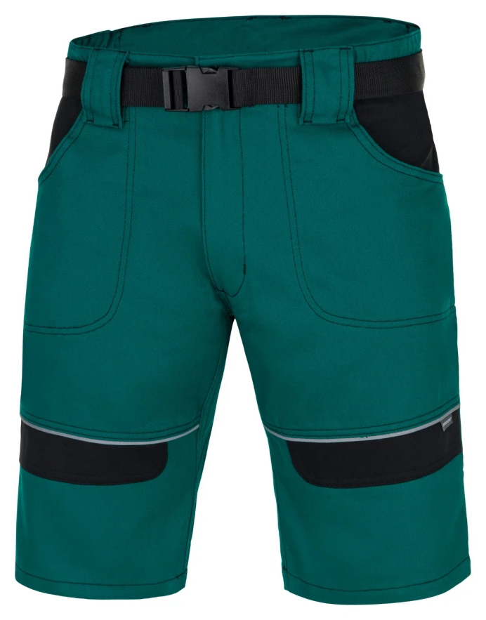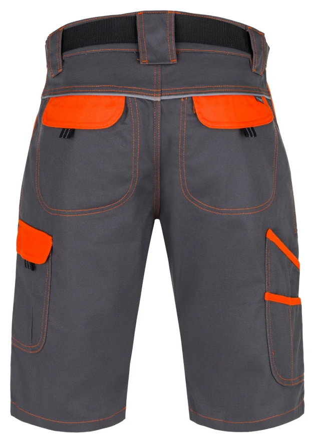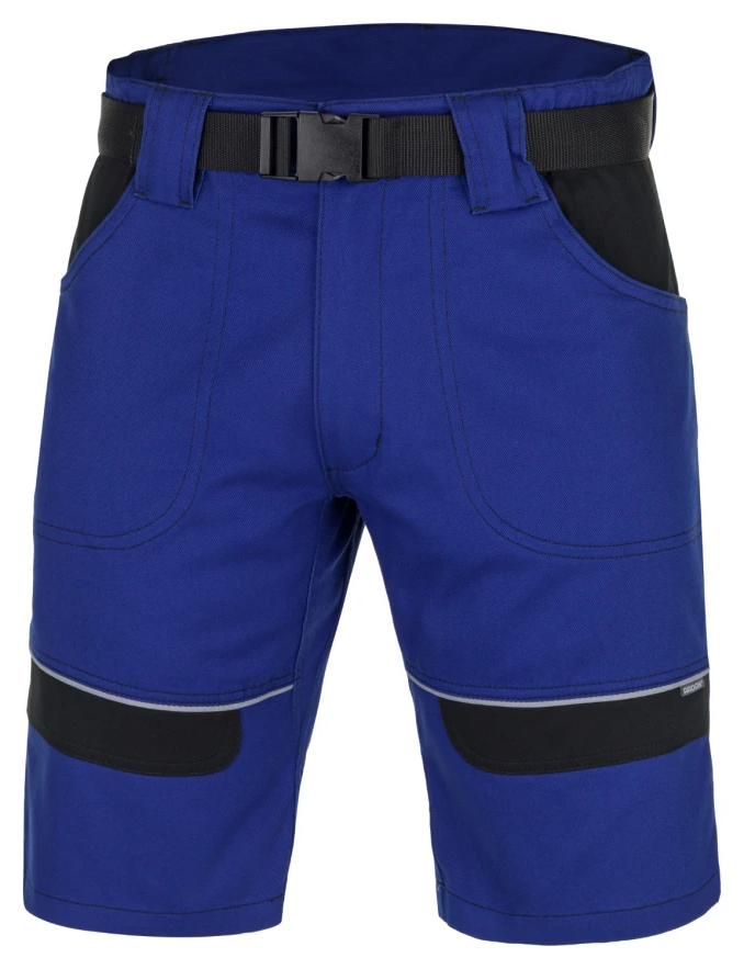 Klasické montérkové kraťasy do pása športového strihu, zapínanie na zips a gombík, reflexné prvky, guma v páse pre pohodlné nosenie, 2 zadné vrecká, bočné multifunkčné vrecká na náradie na nohaviciach, dodávané s opaskom, materiál 100% bavlna, keprová väzba.