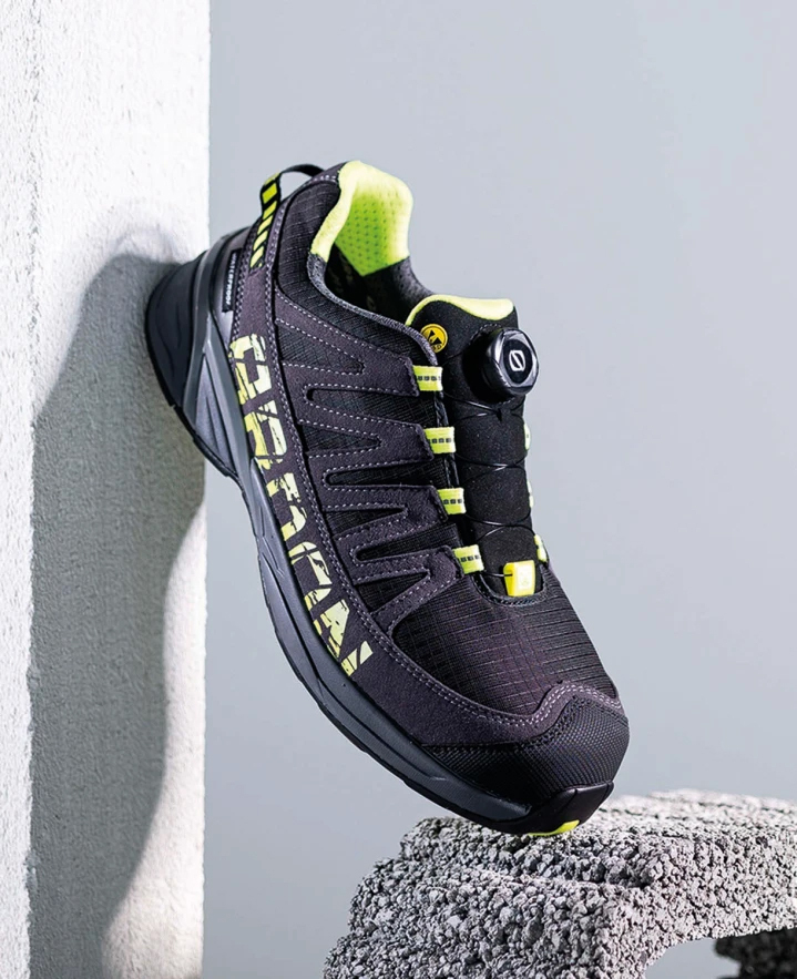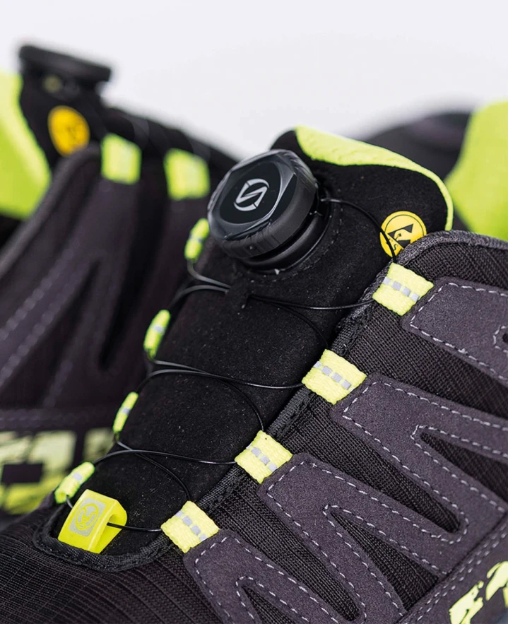 Bezpečnostná poltopánka ENERDIG predstavuje ideálnu voľbu pre pracovníkov, ktorí hľadajú spojenie špičkovej ochrany, športového komfortu a atraktívneho dizajnu. Zvršok z kombinácie mikrovlákna a textílie KANVAS s vodeodpudivou úpravou zaručuje odolnosť, zatiaľ čo vodeodolná membrána HYDRY spoľahlivo bráni prenikaniu vlhkosti a udržiava nohy v suchu. O maximálne pohodlie sa stará anatomicky tvarovaná stielka z PU peny a ľahká podošva MD/guma, ktorá vďaka vrstve Phylonu vynikajúco tlmí nárazy pri chôdzi. Bezpečnosť zabezpečuje kompozitná špička a kevlarová planžeta, vďaka čomu je obuv úplne bez kovových častí (Metal-free) a spĺňa antistatické normy ESD. Užívateľský komfort podčiarkuje inovatívny systém zapínania na polohovacie koliesko, ktorý umožňuje rýchle a presné utiahnutie bez klasického šnurovania. Táto čierna poltopánka spĺňa normu EN ISO 20345 a je univerzálnym riešením pre vnútorné aj vonkajšie prevádzky.