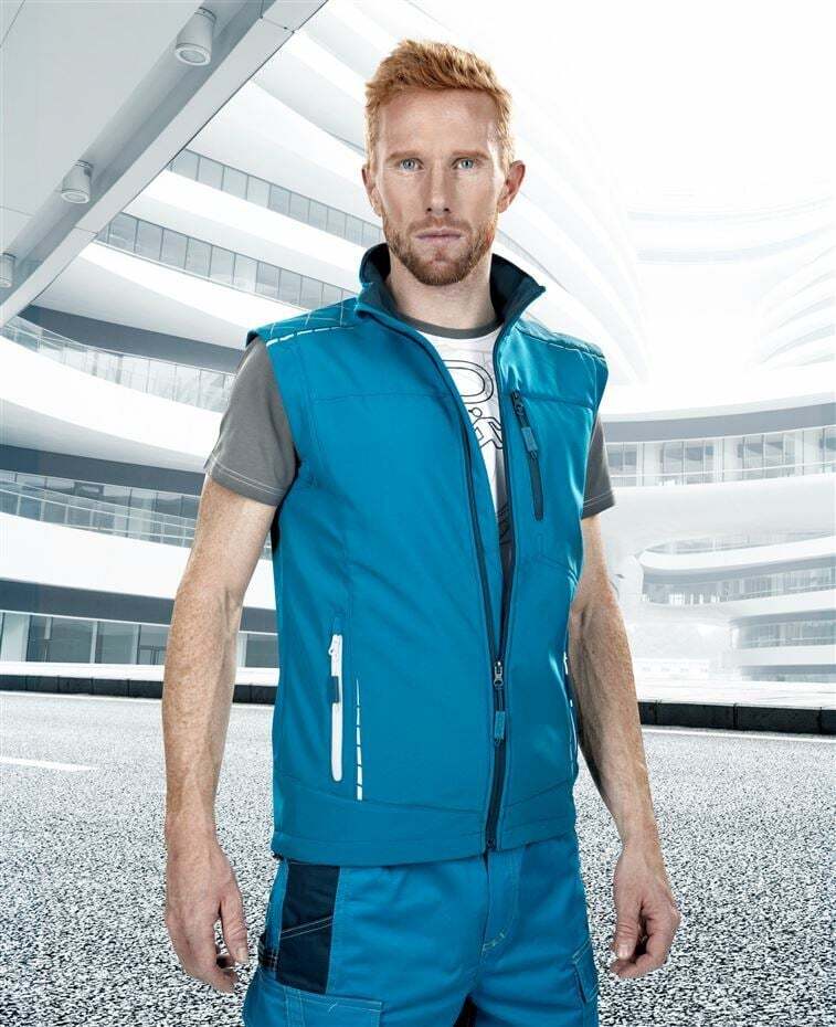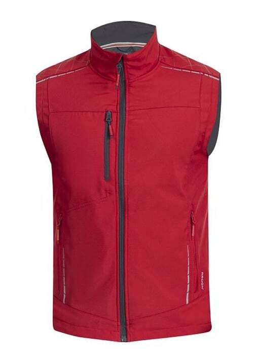 Softshellová priedušná vesta, odolná proti vetru, priedušná vďaka technológií ElasticTech, elastický a ľahký funkčný materiál, zatavené švy, vnútorné sťahovanie, 3 vrecká na zips, reflexné prvky, materiál 100% polyester.