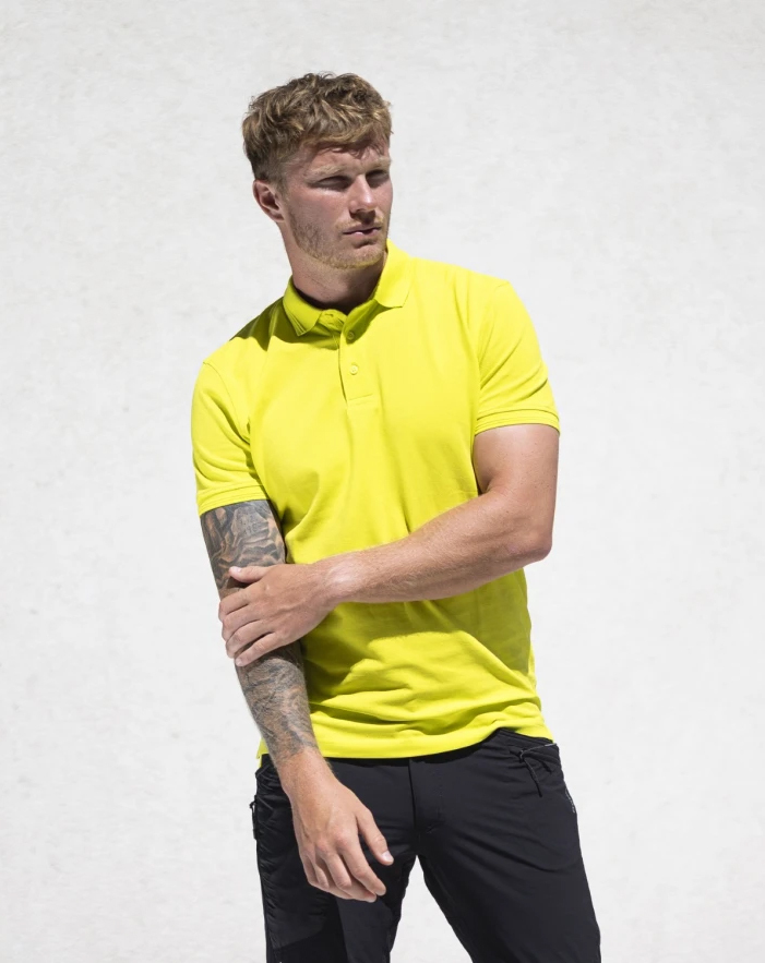Pánska polokošeľa z predpranej bavlny, ktorá je odolnejšia voči spraniu farieb, najmä však obmedzuje zrážanie po vypraní. Je doplnená golierom s dizajnovým prvkom použitým aj na rukávovom leme. Gombíková léga je spevnená ozdobnou nášivkou. Spodný lem s predĺženým zadným dielom a bočnými rázporkami, moderný strih rukávov podčiarkuje tvar ramien. Látka so silikónovou úpravou, ktorá zjemňuje povrch, dodáva lesk a predlžuje životnosť výrobku. Materiál 100 % bavlna pique.