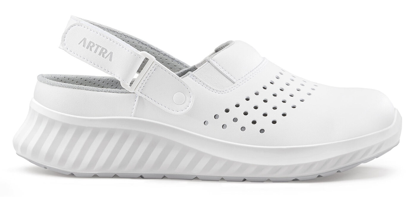 Model ART 702 Air vyniká tým, že sedí na nohách ako uliata. Otvorený sandálový strih v kombinácii s perforovaným zvrškom zaručuje, že vaše nohy zostanú svieže aj počas najdlhších a najnáročnejších zmien. Široká predná časť predchádza únave a zabezpečuje priestor pre všetky prsty, čo z tejto obuvi robí špičkovú voľbu do nemocníc, laboratórií či kuchýň.