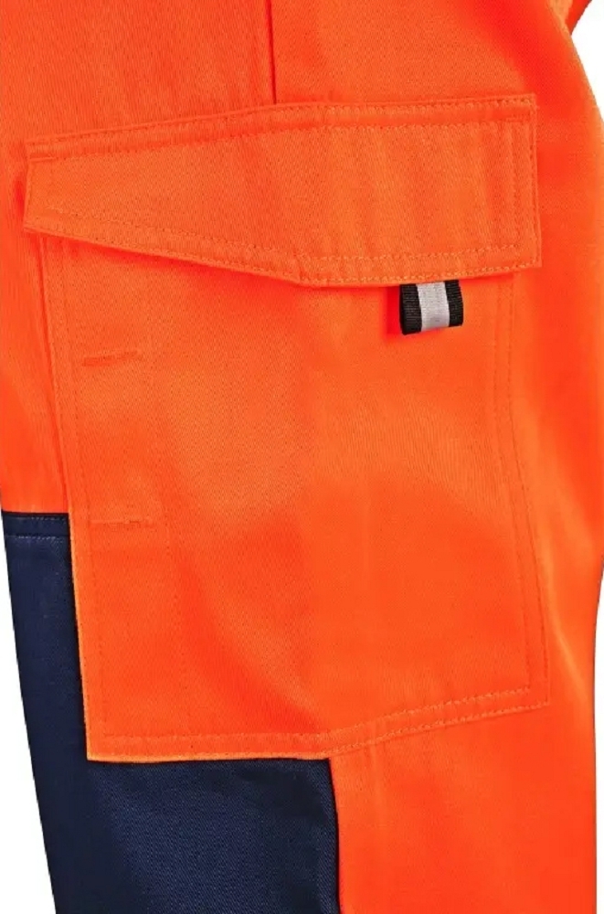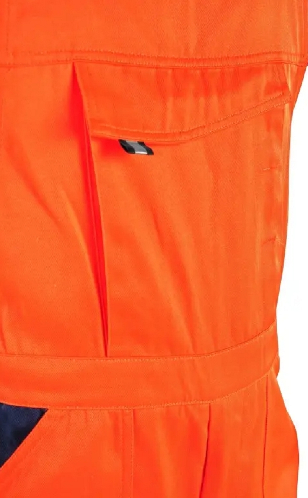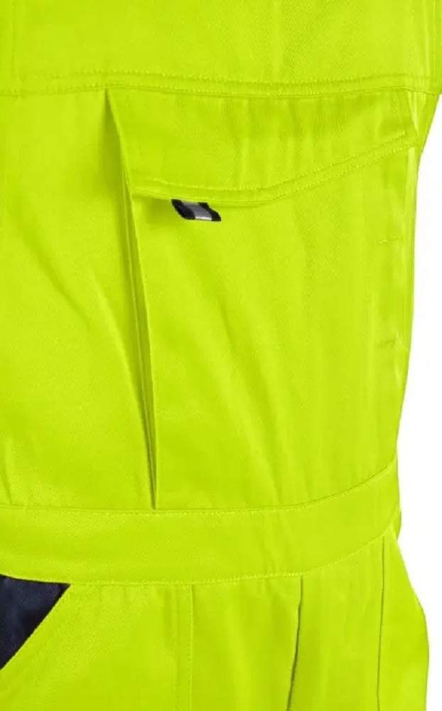 Pánske výstražné nohavice s náprsenkou CXS NORWICH poskytujú maximálnu viditeľnosť vďaka segmentovaným reflexným pásikom so šírkou 7 cm a sú vyrobené z pevnej keprovej tkaniny (65 % polyester, 35 % bavlna) s gramážou 280 g/m², ktorá zabezpečuje odolnosť a dlhú životnosť. Elastické šle so zadnou gumou umožňujú pohodlné nosenie a ich dĺžku možno jednoducho upraviť pomocou plastovej pracky, pričom bočné zapínanie na plastové gombíky uľahčuje obliekanie. Zahradníky sú vybavené praktickým množstvom vreciek: náprsným vreckom s klopou na suchý zips, dvoma prednými vreckami, dvoma zadnými vreckami s klopou, ľavým stehenným vreckom so suchým zipsom a menším vreckom na ceruzku. Vďaka systému EASY-PROLONG je možné jednoducho predĺžiť nohavice pre vyššiu postavu uvoľnením švu. Spĺňajú normu EN ISO 20471 aj certifikáciu OEKO-TEX® STANDARD 100, čo z nich robí spoľahlivý pracovný odev pre stavebníctvo, cestárov, vodičov, údržbu, logistiku, leteckú a lodnú dopravu, komunálne služby či záchranárov.