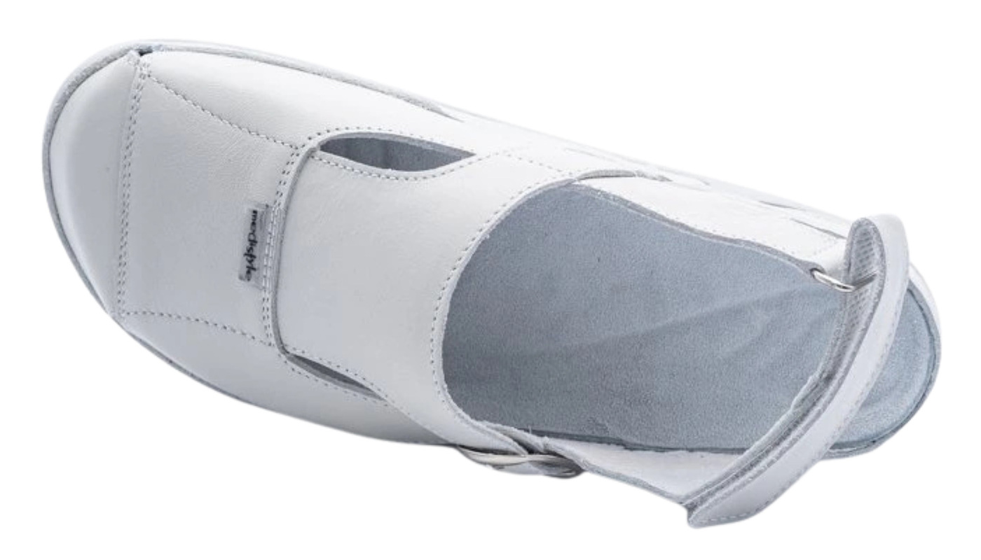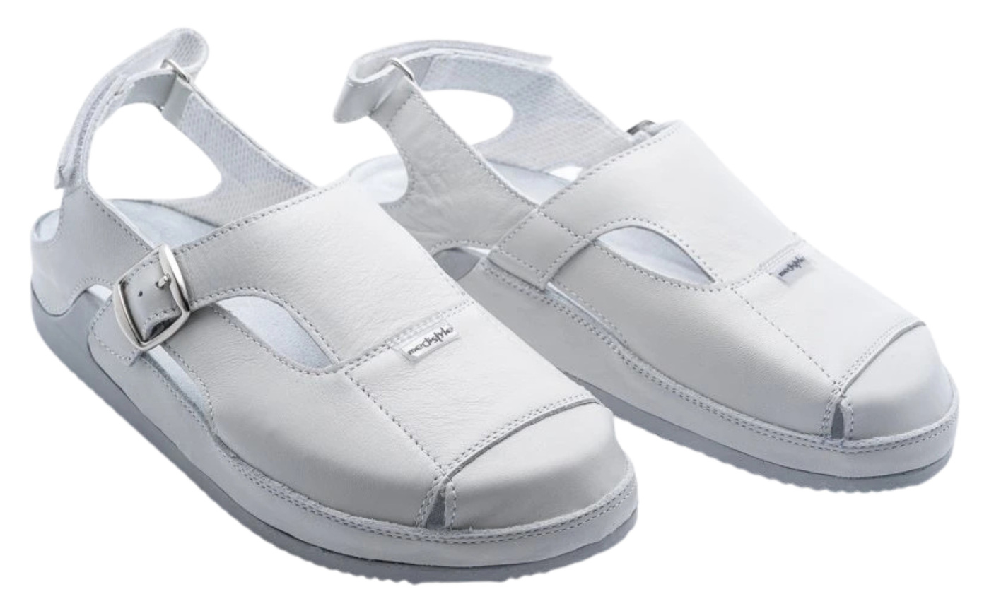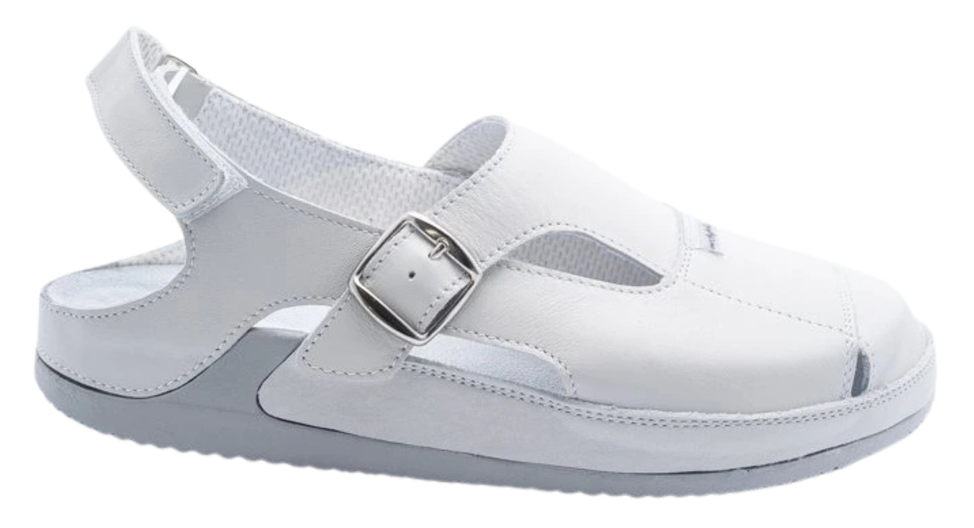 Dámske zdravotné sandále Darina sú ideálnou voľbou pre lekárnikov, nemocničný personál a pracovníkov v ordináciách, ktorí trávia dlhé hodiny na nohách a potrebujú spoľahlivú obuv s maximálnym komfortom, stabilitou a oporou pre chodidlo. Anatomicky tvarovaná podošva podporuje priečnu aj pozdĺžnu klenbu a napomáha správnemu držaniu tela, čo je nevyhnutné pri celodennom nosení v náročných pracovných podmienkach. Zvršok sandálov je vybavený zadným pásikom na suchý zips, ktorý umožňuje jednoduché prispôsobenie šírky podľa potreby, čím zaisťuje stabilitu a pohodlie počas celého pracovného dňa. Praktický dizajn uľahčuje obúvanie a zároveň zaručuje, že sandále dokonale sedia na nohe. Darina je perfektnou voľbou pre každého, kto hľadá kvalitné, odolné a pohodlné pracovné sandále, ktoré spoja funkčnosť, komfort a podporu zdravého postoja pri dlhom státí či chôdzi.
