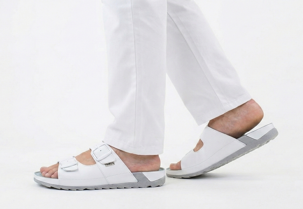 Pánske zdravotné šľapky Erik predstavujú pohodlnú obuv, ktorá poskytuje optimálnu oporu pre chodidlo a podporuje správnu posturu počas celodenného nosenia. Anatomicky tvarovaná stielka zaisťuje komfort a stabilitu pri každom kroku, čo je ideálne pre vychádzky, prácu aj voľný čas. Zvršok je vybavený dvoma páskami na pracky, ktoré umožňujú jednoduché prispôsobenie šírke nohy, čím sa zabezpečuje dokonalé padnutie a maximálne pohodlie. Tento praktický dizajn zároveň poskytuje stabilitu a podporu, čo ocenia všetci, ktorí trávia dlhé hodiny na nohách. Šľapky Erik sú ideálnou voľbou pre každodenné nosenie aj pracovné prostredie, spájajú štýl, komfort a zdravotnú funkciu v jednej obuvi.