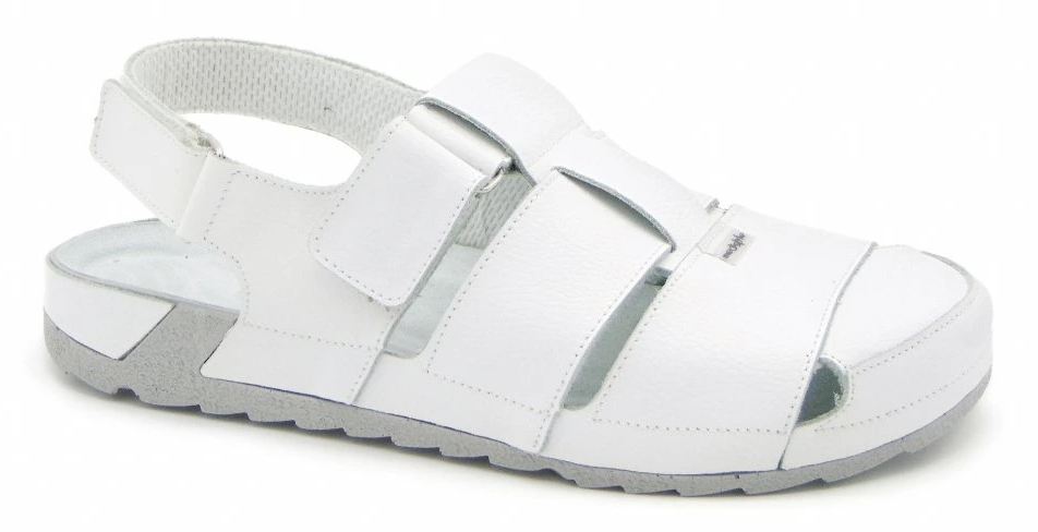 Pánske zdravotné sandále Marek predstavujú kvalitnú pracovnú, relaxačnú a vychádzkovú obuv, ktorá ponúka maximálne pohodlie a oporu počas celého dňa. Tento model je ideálny pre pracovníkov v zdravotníctve, lekárnikov, kuchárov či laborantov, ktorí trávia dlhé hodiny na nohách a potrebujú spoľahlivú obuv so zdravotnými vlastnosťami. Sandále s plnou špicou chránia prsty a anatomicky tvarovaná stielka podporuje priečnu aj pozdĺžnu klenbu, čím zaisťuje správne postavenie chodidla, stabilitu a úľavu pri každom kroku. Vymäkčená pätová časť účinne tlmí nárazy, šetrí kĺby aj chrbticu a prispieva k celkovému komfortu pri chôdzi. Zvršok a stielka sú vyrobené z kvalitnej prírodnej kože, ktorá je priedušná, odolná a vytvára zdravé prostredie pre chodidlá. Vnútro je podšité mäkkou netkanou textíliou, ktorá zvyšuje pohodlie a odvádza pot, čím pomáha predchádzať vzniku plesní a podráždeniu pokožky. Odľahčená polyuretánová podrážka s anatomickým tvarovaním zaručuje optimálnu podporu v najviac zaťažovaných častiach chodidla. Sandále Marek sú vhodné na každodenné nosenie doma, v práci aj počas letných dní – spájajú starostlivosť, komfort a zdravú oporu pre vaše nohy na každom kroku.