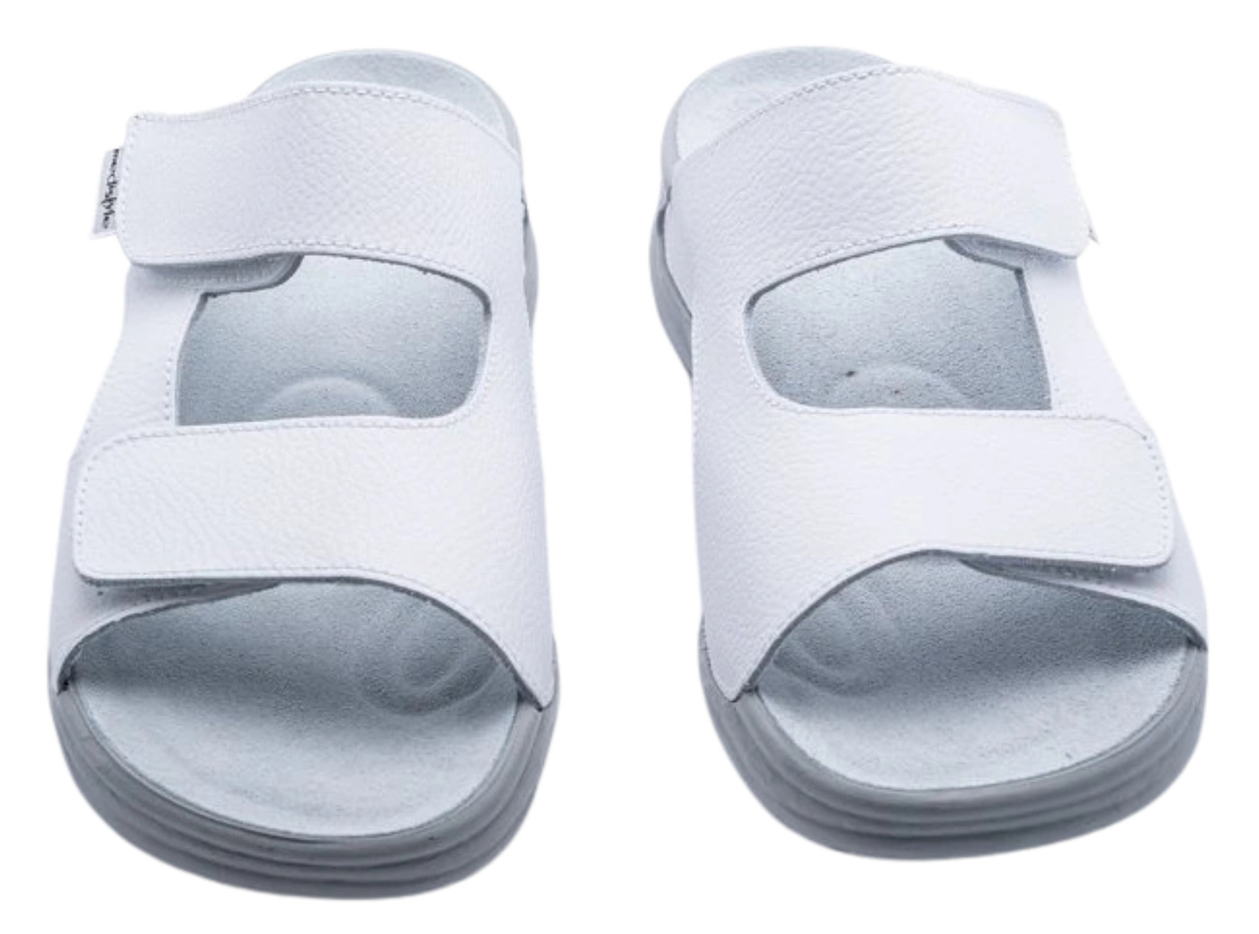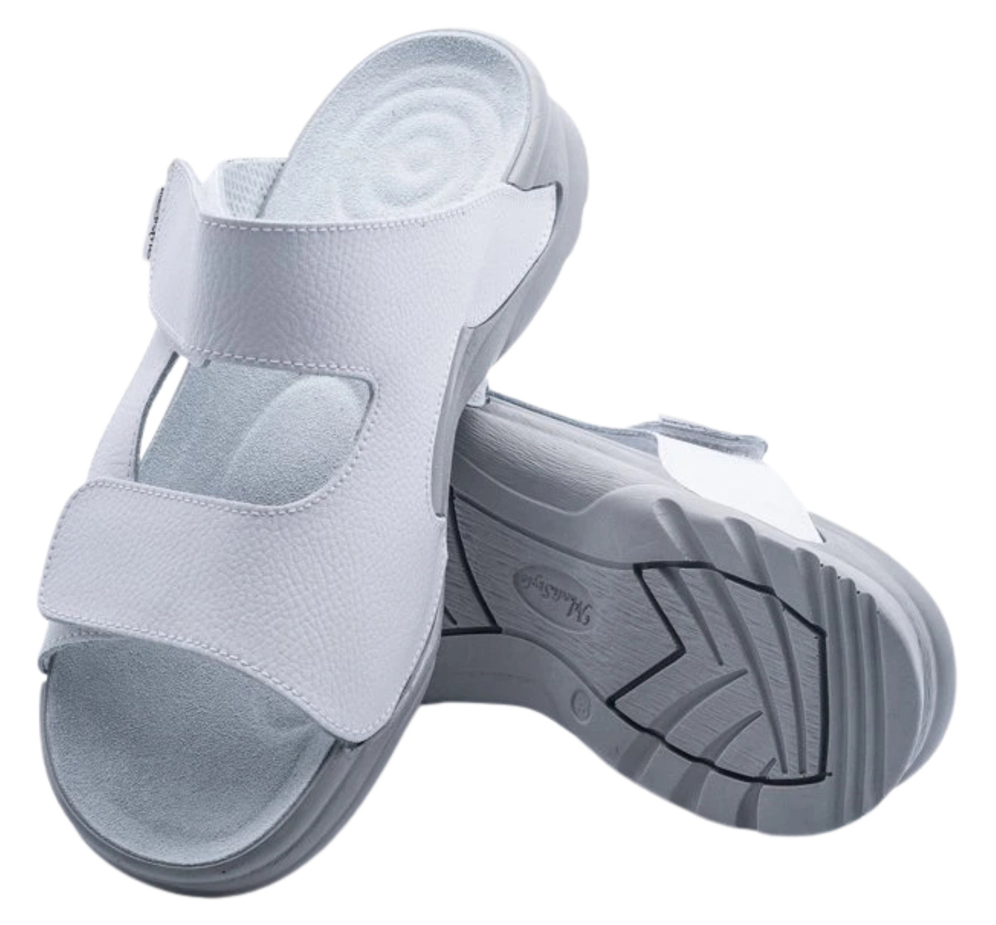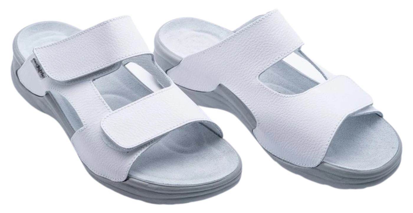 Dámske zdravotné šľapky Mirka sú jedným z najdlhšie predávaných a osvedčených modelov, ktoré poskytujú vynikajúci komfort a stabilitu pri každom kroku. Podošva je špeciálne tvarovaná so širším predným dielom, čo zvyšuje stabilitu a pohodlie pri chôdzi. Tento model je ideálny pre osoby s plochými nohami, pretože anatomické tvarovanie vnútorného priestoru poskytuje podporu chodidlu a napomáha udržiavať správne držanie tela. Hygienická stielka zabezpečuje optimálne podmienky pre nohy, čo prispieva k celodennému pohodliu. Variabilné pásky na suchý zips umožňujú jednoduché prispôsobenie šírky obuvi podľa potreby, čím zaručujú maximálny komfort počas celého dňa. Mirka je ideálnou voľbou pre tých, ktorí hľadajú pohodlnú, stabilnú a praktickú obuv na každodenné nosenie – do práce aj na voľný čas.