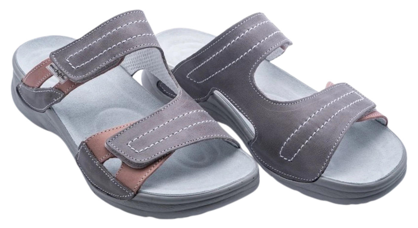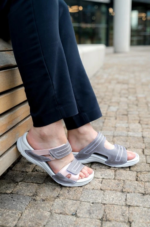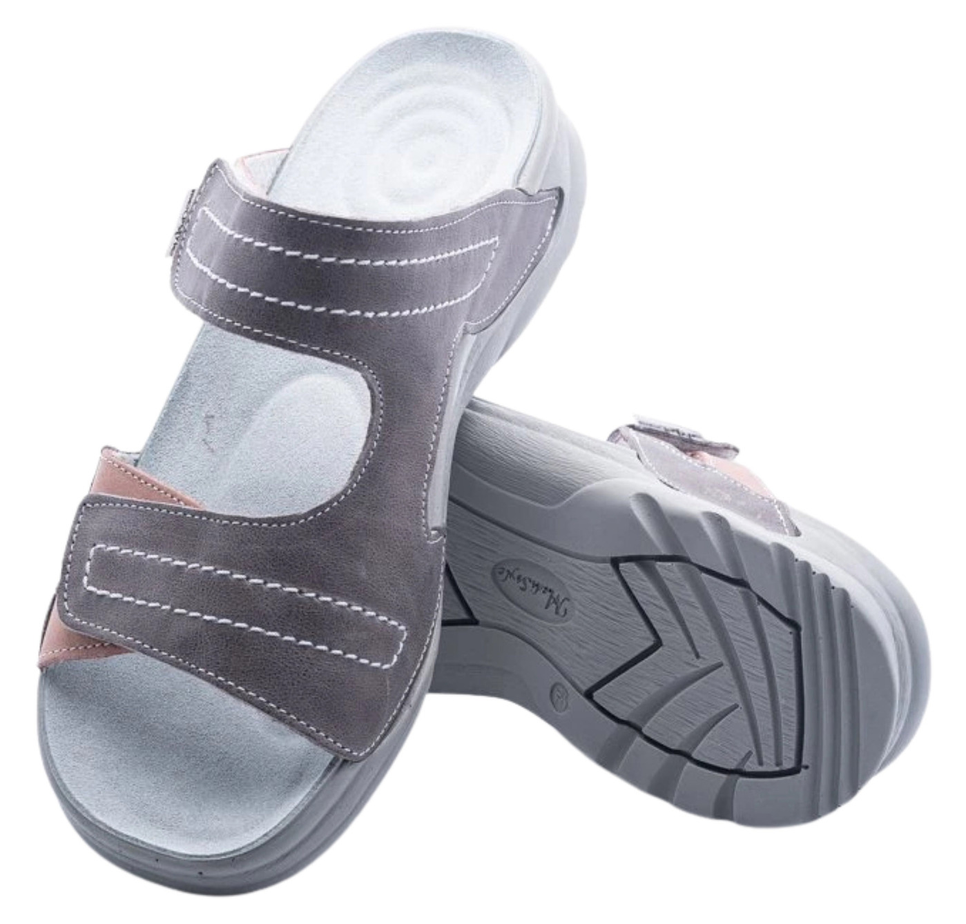 Dámske zdravotné šľapky Nina sú navrhnuté pre tých, ktorí hľadajú pohodlnú obuv poskytujúcu oporu chodidlu a stabilitu pri každom kroku. Anatomicky tvarovaná podošva podporuje správne držanie tela a zabezpečuje komfort pri chôdzi, vďaka čomu sú ideálne na celodenné nosenie. Tento model je vhodný aj pre osoby s plochými nohami, pretože poskytuje potrebnú oporu a pohodlie pre zdravie chodidiel. Hygienická stielka vytvára optimálne podmienky pre nohy, čím zvyšuje celodenný komfort. Variabilné pásky na suchý zips umožňujú jednoduché prispôsobenie šírky obuvi podľa potreby, čím sa zabezpečí dokonalé prispôsobenie a stabilita počas celého dňa. Nina je skvelou voľbou na každodenné nosenie – do práce, na prechádzky aj vo voľnom čase, spájajúc komfort, stabilitu a praktické vlastnosti v jednej obuvi.