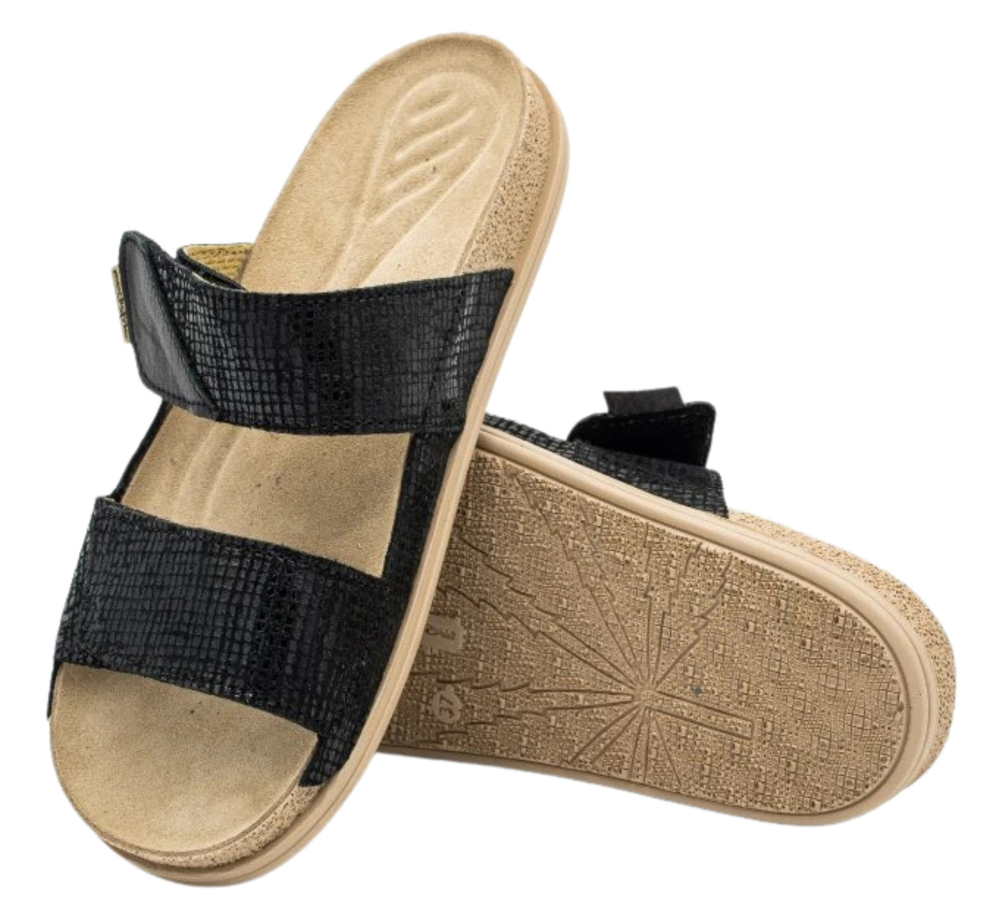 Šľapky Patricie sú navrhnuté pre tých, ktorí hľadajú pohodlnú obuv s moderným dizajnom a výbornou stabilitou. Anatomicky tvarovaná podošva poskytuje pevnú oporu chodidlu, podporuje správne držanie tela a zaisťuje komfort pri každom kroku. Rovnaká podošva ako pri modeli Malaga zabezpečuje ľahkú chôdzu, mäkký došľap a maximálnu stabilitu počas celého dňa. Zvršok je vybavený dvoma pásikmi na suchý zips, ktoré umožňujú jednoduché prispôsobenie šírky obuvi podľa potreby, vďaka čomu sa dokonale prispôsobí tvaru nohy a poskytne istotu pri chôdzi. Tento model je ideálny na každodenné nosenie, do práce aj na voľný čas – pre všetkých, ktorí hľadajú pohodlné, stabilné a štýlové šľapky spájajúce estetiku s funkčnosťou.
