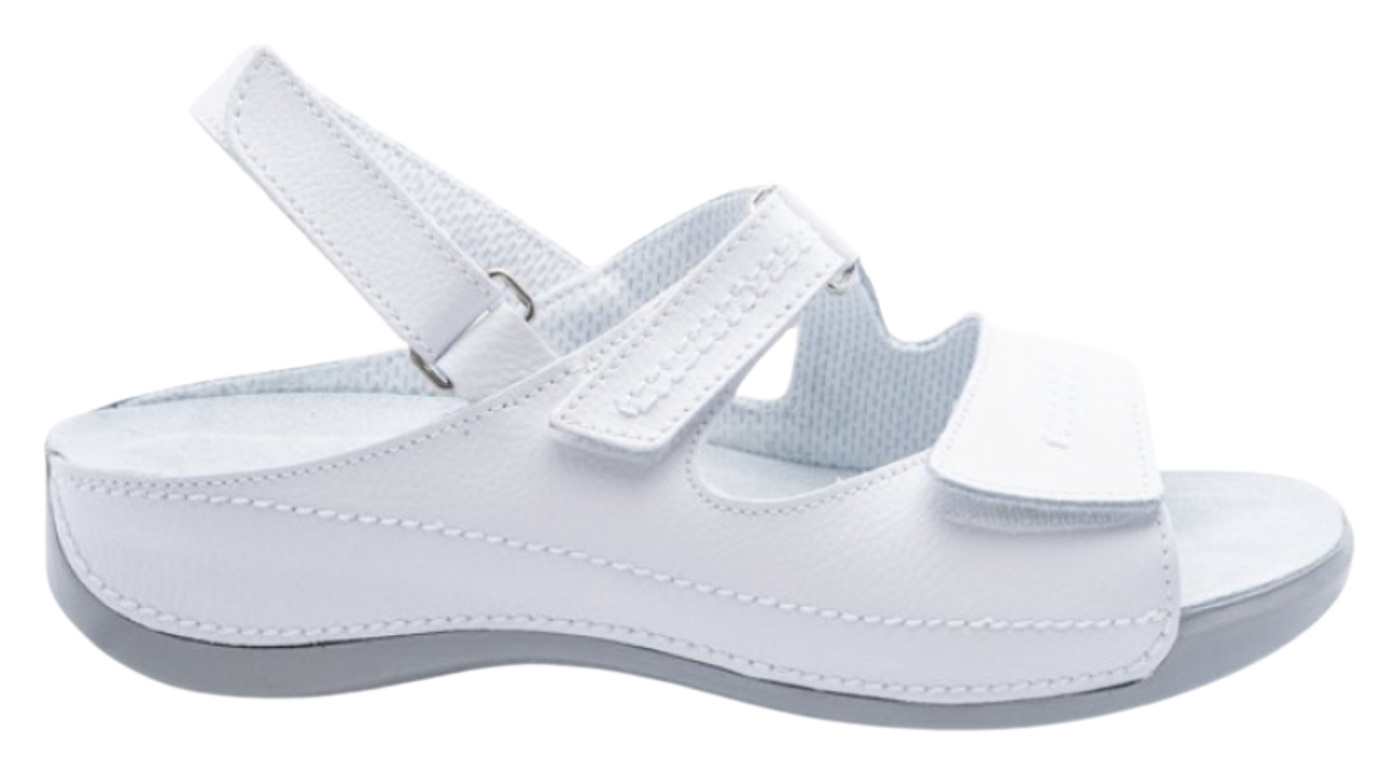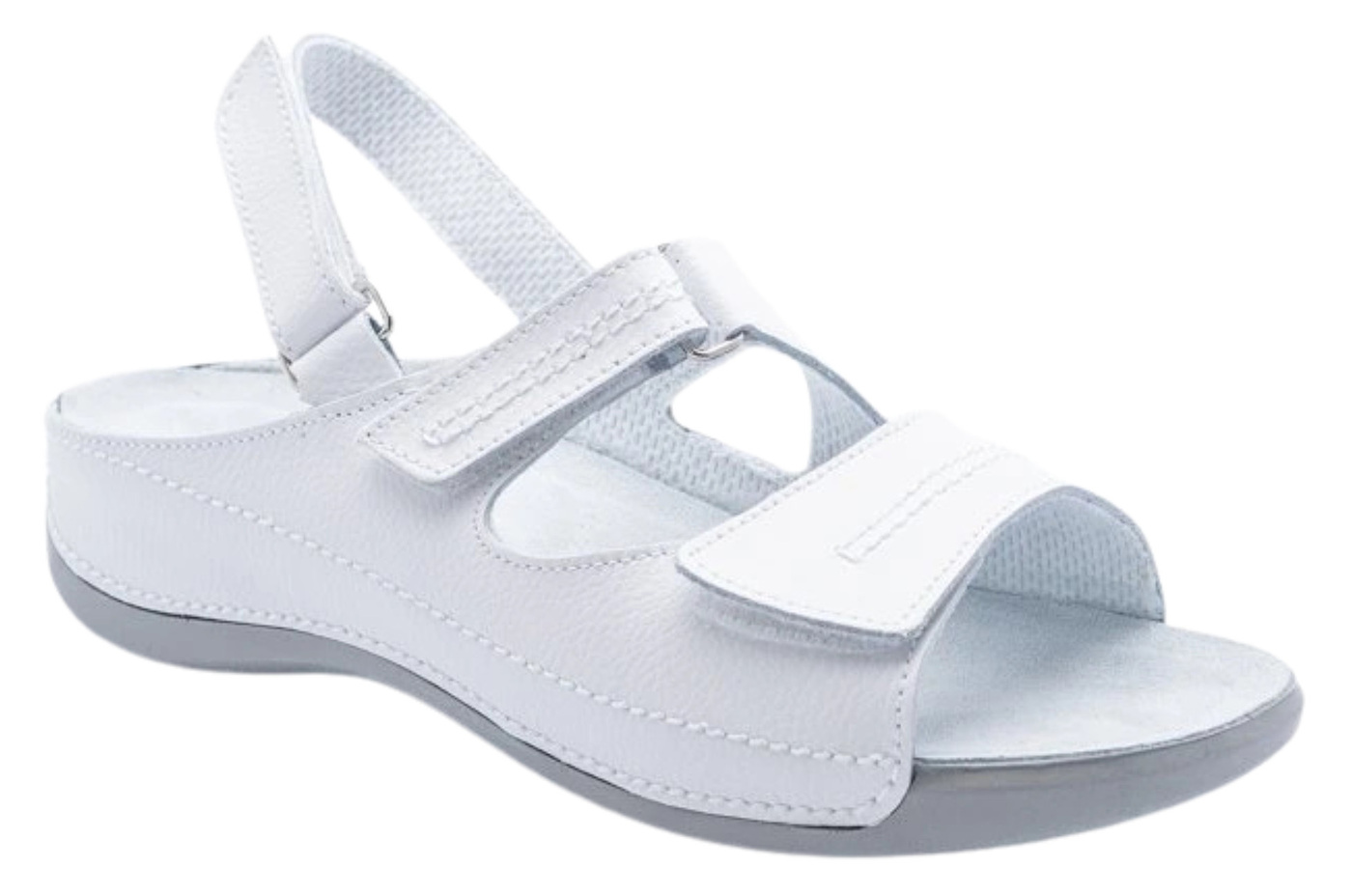 Dámske zdravotné sandále Šárka predstavujú pohodlnú obuv, ktorá spája komfort, stabilitu a zdravotnú funkciu. Anatomicky tvarovaná stielka so špeciálnou podporou klenby zabezpečuje optimálne postavenie chodidla a absorbuje nárazy pri každom kroku, pričom vymäkčená patná časť šetrí kĺby a chrbticu. Zvršok a stielka sú vyrobené z kvalitnej prírodnej kože, ktorá umožňuje pokožke dýchať a znižuje riziko mikrobiálnych a mykotických ochorení, najmä v medziprstných priestoroch. Odolná a ľahká polyuretánová podrážka s anatomickým tvarovaním zaisťuje pohodlie a stabilitu po celý deň. Tieto sandále sú vhodné na každodenné nosenie doma, v práci alebo pri letných vychádzkach, spájajú štýl, pohodlie a podporu zdravia nôh v jednej obuvi.