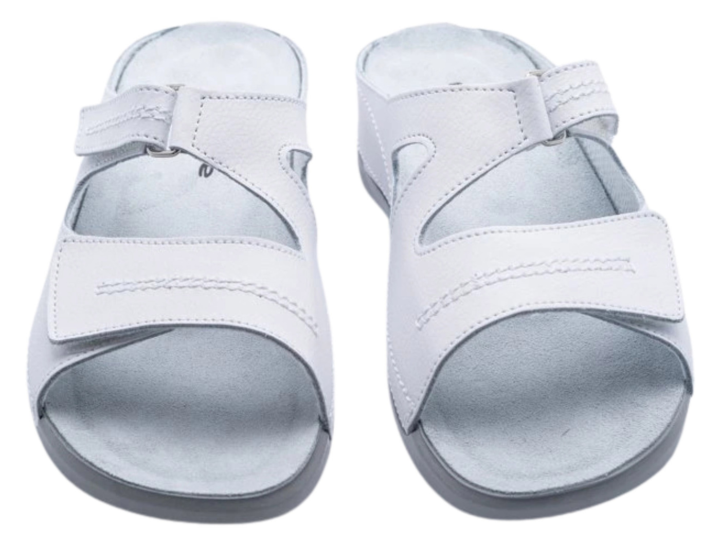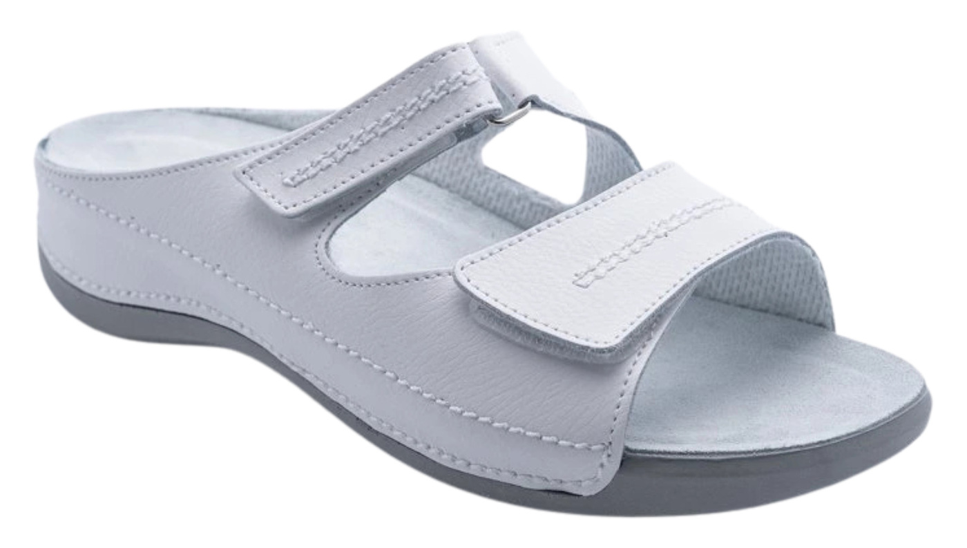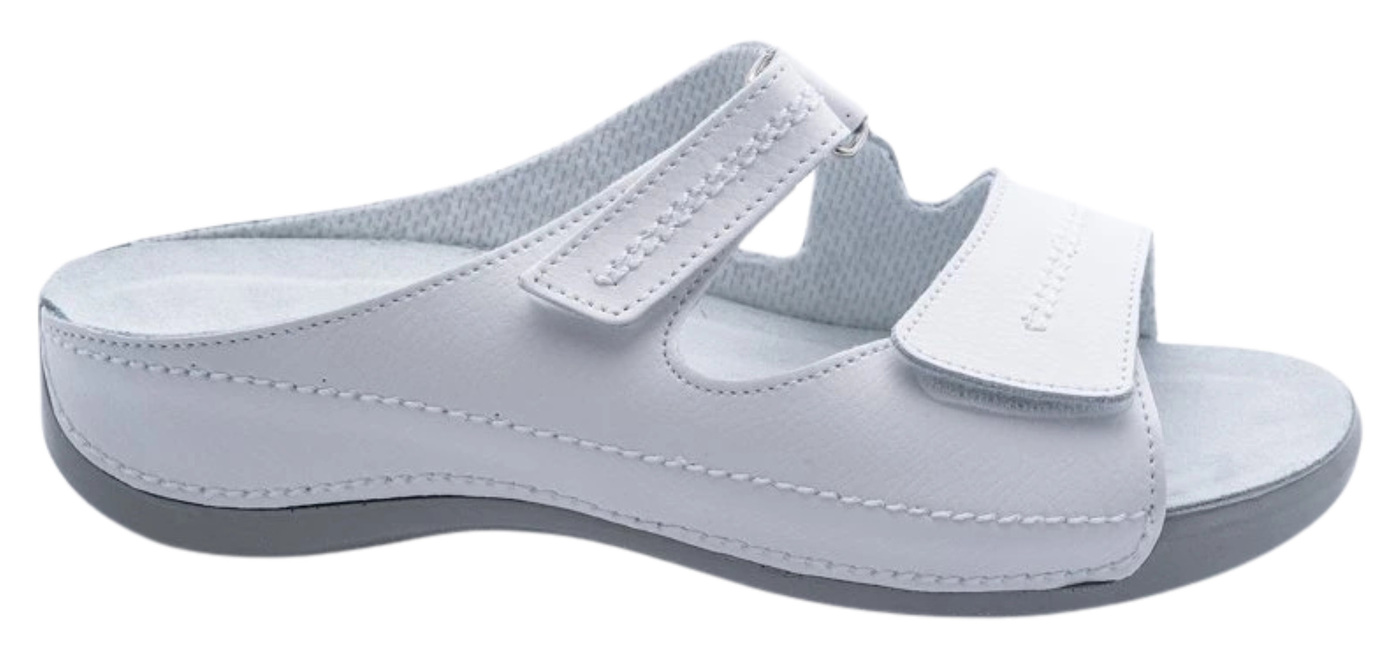 Dámske zdravotné šľapky Šárka sú navrhnuté pre ženy so širšími chodidlami, ktoré hľadajú pohodlnú obuv rešpektujúcu anatomický tvar nohy. Anatomicky tvarovaná podošva poskytuje oporu chodidlu, podporuje správne držanie tela a zaisťuje komfort pri každom kroku, vďaka čomu sú vhodné na celodenné nosenie. Zvršok je vybavený pásikmi na suchý zips, ktoré umožňujú jednoduché prispôsobenie šírky obuvi podľa potreby, čím sa zabezpečí maximálne pohodlie a stabilita po celý deň – doma aj na cestách. Šárka je ideálnou voľbou na každodenné nosenie, do práce či na voľný čas, pre všetky ženy, ktoré hľadajú štýlové šľapky podporujúce zdravie chodidiel a komfort počas celého dňa.