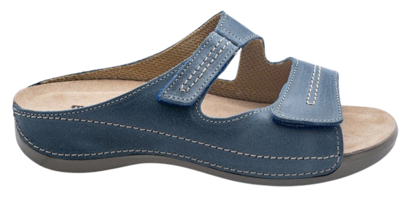 Dámske zdravotné šľapky Šárka sú navrhnuté pre ženy so širšími chodidlami, ktoré hľadajú pohodlnú obuv rešpektujúcu anatomický tvar nohy. Anatomicky tvarovaná podošva poskytuje oporu chodidlu, podporuje správne držanie tela a zaisťuje komfort pri každom kroku, vďaka čomu sú vhodné na celodenné nosenie. Zvršok je vybavený pásikmi na suchý zips, ktoré umožňujú jednoduché prispôsobenie šírky obuvi podľa potreby, čím sa zabezpečí maximálne pohodlie a stabilita po celý deň – doma aj na cestách. Šárka je ideálnou voľbou na každodenné nosenie, do práce či na voľný čas, pre všetky ženy, ktoré hľadajú štýlové šľapky podporujúce zdravie chodidiel a komfort počas celého dňa.