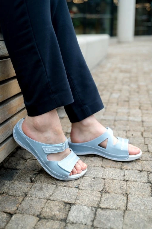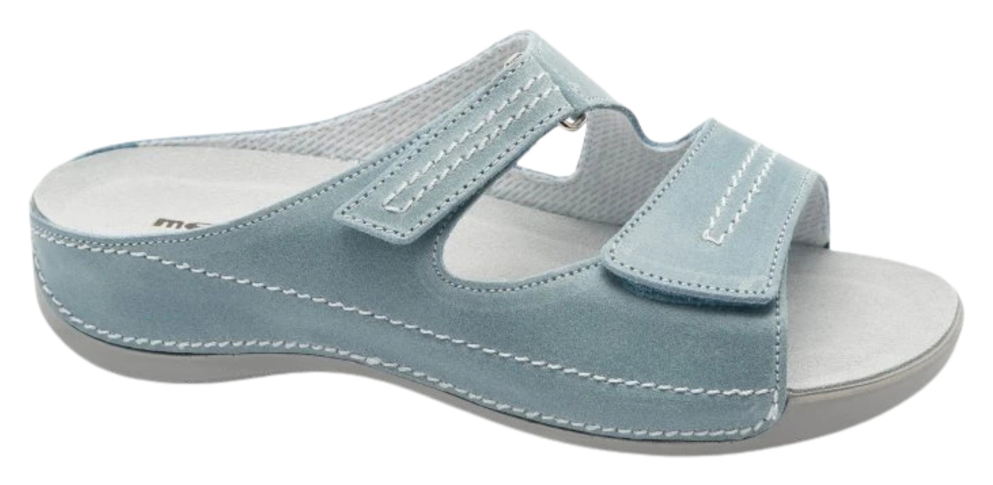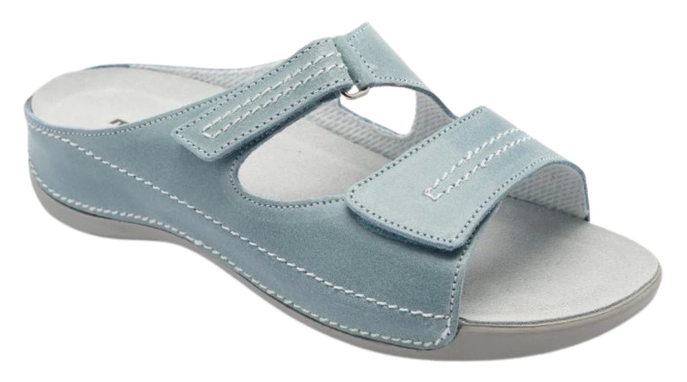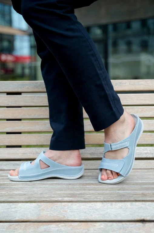 Dámske zdravotné šľapky Šárka sú navrhnuté pre ženy so širšími chodidlami, ktoré hľadajú pohodlnú obuv rešpektujúcu anatomický tvar nohy. Anatomicky tvarovaná podošva poskytuje oporu chodidlu, podporuje správne držanie tela a zaisťuje komfort pri každom kroku, vďaka čomu sú vhodné na celodenné nosenie. Zvršok je vybavený pásikmi na suchý zips, ktoré umožňujú jednoduché prispôsobenie šírky obuvi podľa potreby, čím sa zabezpečí maximálne pohodlie a stabilita po celý deň – doma aj na cestách. Šárka je ideálnou voľbou na každodenné nosenie, do práce či na voľný čas, pre všetky ženy, ktoré hľadajú štýlové šľapky podporujúce zdravie chodidiel a komfort počas celého dňa.