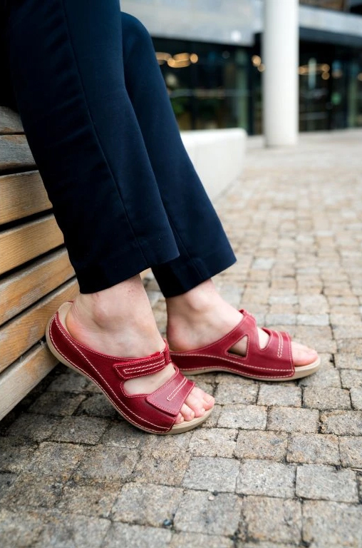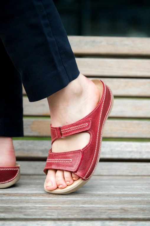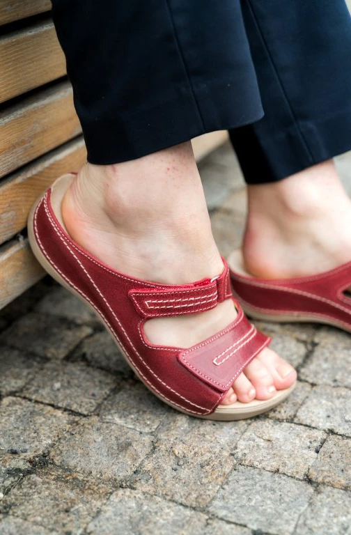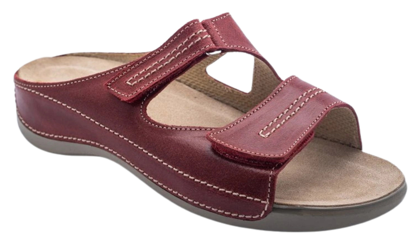 Dámske zdravotné šľapky Šárka sú navrhnuté pre ženy so širšími chodidlami, ktoré hľadajú pohodlnú obuv rešpektujúcu anatomický tvar nohy. Anatomicky tvarovaná podošva poskytuje oporu chodidlu, podporuje správne držanie tela a zaisťuje komfort pri každom kroku, vďaka čomu sú vhodné na celodenné nosenie. Zvršok je vybavený pásikmi na suchý zips, ktoré umožňujú jednoduché prispôsobenie šírky obuvi podľa potreby, čím sa zabezpečí maximálne pohodlie a stabilita po celý deň – doma aj na cestách. Šárka je ideálnou voľbou na každodenné nosenie, do práce či na voľný čas, pre všetky ženy, ktoré hľadajú štýlové šľapky podporujúce zdravie chodidiel a komfort počas celého dňa.