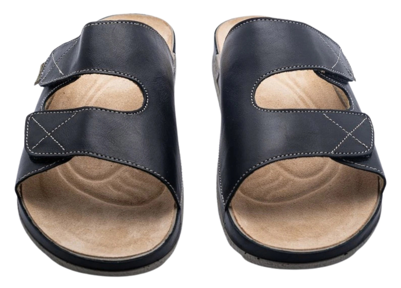 Pánske zdravotné šľapky Vilém sú skvelou voľbou pre každodenné nosenie – či už doma, počas voľného času alebo pri nenáročných vychádzkach. Anatomicky tvarovaná podrážka poskytuje oporu chodidlu, podporuje správne držanie tela a zabezpečuje maximálne pohodlie pri každom kroku. Tento model je ideálny pre mužov, ktorí hľadajú praktickú, stabilnú a zároveň pohodlnú obuv. Zvršok šľapiek je vybavený dvoma pásikmi na suchý zips, ktoré umožňujú jednoduché prispôsobenie šírky nohy, čím zaručujú ideálne pohodlie a pevné usadenie počas celého dňa. Vďaka tomuto riešeniu sa obuv ľahko obúva a dokonale prispôsobí tvaru nohy. Stabilná podrážka zabezpečuje istý krok a spoľahlivosť pri každom pohybe. Model Vilém spája komfort, funkčnosť a nadčasový dizajn, vďaka čomu je ideálnym spoločníkom na bežné nosenie doma aj vonku.